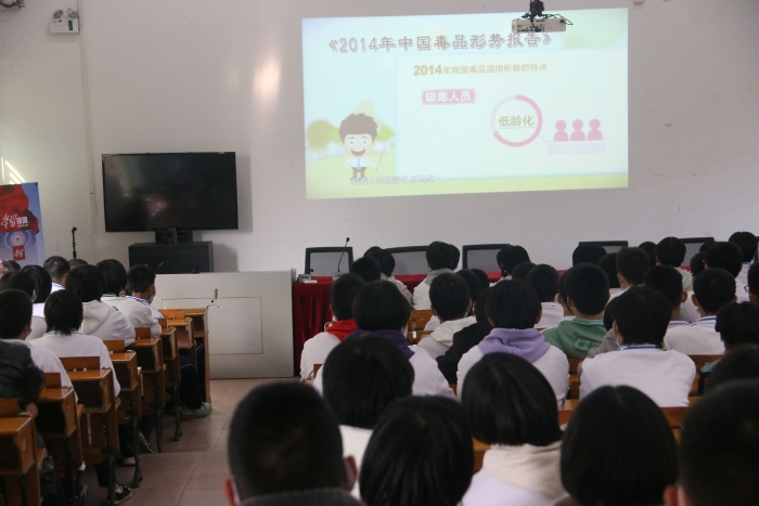 在活動過程中,播放了禁毒教育專題片《致青春》,影片講述了毒品的種類、危險性、上癮后戒斷的難度等,以生動的畫面和具體事例感染學(xué)生,讓同學(xué)們在聽和看的過程中清楚地認(rèn)識到毒品對人體大腦和身體的傷害,學(xué)會在生活和學(xué)習(xí)中如何保護(hù)自己?;顒幼詈笥晌鳑_派出所羅承志民警做警示教育,他提醒同學(xué)們在假期時間不要進(jìn)出KTV等娛樂場所,要善于調(diào)節(jié)自己情緒,千萬不要因青春期情緒過激或盲目尋求刺激而沾染上毒品,一定要充分認(rèn)識到毒品的危害,做好寒假期間個人自身的安全防護(hù),慎交友,交良友,自覺遠(yuǎn)離毒品,抵制毒品,珍愛生命。同時,過年外出注意自己的人身安全,警惕陌生人。