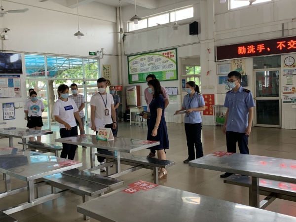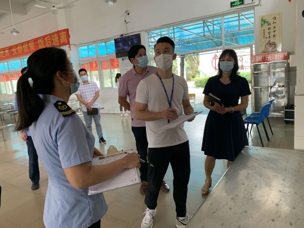 打印 |為做好第三批學生返校工作,提高學校食品安全管理意識,保障師生用餐安全,2020年5月16日上午,中山市市場監(jiān)督管理局工作人員蒞臨四沙小學進行復學學校食品安全檢查。橫欄鎮(zhèn)教育事務指導中心主任霍嘉俊、四沙小學校長歐慧芳及學校負責食堂的副校長古焯煊、食堂負責人及食品安全管理員陪同檢查。