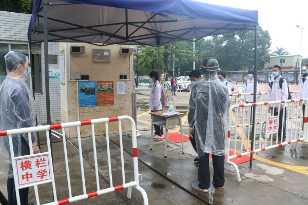 4月23日上午,橫欄中學(xué)舉行2020年春季學(xué)期初三學(xué)生返校疫情應(yīng)急演練。鎮(zhèn)防疫中心及橫欄醫(yī)院相關(guān)人員,學(xué)校行政、初三級教師、后勤人員共同參與演練。