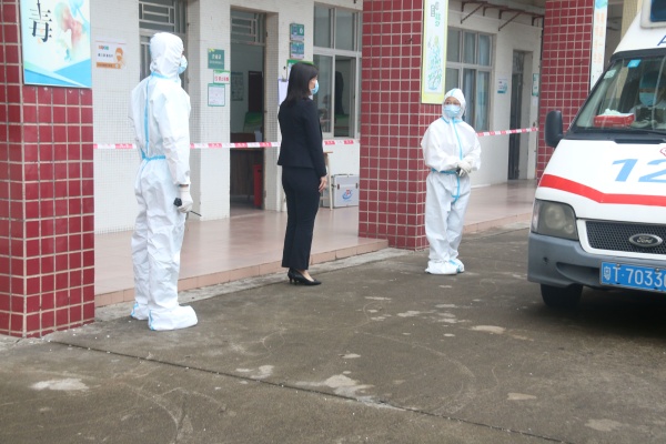 上午第三節(jié)課上課時,初三(3)班任課教師突發(fā)身體不適,體溫檢測37.3度,帶有咳嗽頭疼等癥狀,并在14天內(nèi)與疫情發(fā)生地人員有接觸,被護送到學(xué)校觀察3室進行等候,校醫(yī)到場后,給發(fā)熱老師核實體溫,詢問并登記該老師流行病學(xué)史,隨即向?qū)W校防控領(lǐng)導(dǎo)組負(fù)責(zé)人報告情況,學(xué)校負(fù)責(zé)人根據(jù)反映的情況立即通知橫欄醫(yī)院安排救護車把患者接到醫(yī)院做進一步的檢查。待醫(yī)院核實情況后,隨即向鎮(zhèn)防疫部門匯報相關(guān)情況,并在防疫部門的指導(dǎo)下對相關(guān)學(xué)生、教師進行管控,對涉及室場進行消毒及相關(guān)后續(xù)工作。同時做好學(xué)生心理輔導(dǎo)和對家長進行情況反饋。