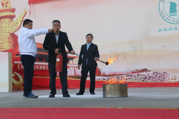 演練結(jié)束后,總指揮黃富榮對(duì)活動(dòng)進(jìn)行了小結(jié),并提出了一些建設(shè)性意見(jiàn),告誡同學(xué)們遇事不慌亂,要聽(tīng)從指揮。隨后現(xiàn)場(chǎng)講解和示范了使用滅火器的方法,同時(shí)還邀請(qǐng)了老師、舍監(jiān)進(jìn)行現(xiàn)場(chǎng)演示,手持滅火器把起火的煤氣罐進(jìn)行及時(shí)撲滅。向大家傳授了發(fā)生火災(zāi)時(shí)的自救方法和防護(hù)知識(shí)。