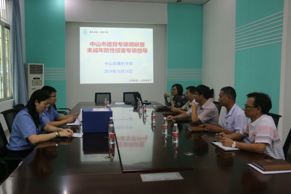 10月14日下午,中山市德育專項(xiàng)調(diào)研暨未成年防性侵害專項(xiàng)督導(dǎo)工作組到橫欄中學(xué)進(jìn)行專項(xiàng)調(diào)研與督導(dǎo)。此次調(diào)研督導(dǎo)是依據(jù)“一號(hào)檢察院建議”及教育部辦公廳《關(guān)于進(jìn)一步加強(qiáng)中小學(xué)生(幼兒園)預(yù)防性侵害學(xué)生工作的通知》的主要精神,在全市范圍開(kāi)展“守護(hù)花開(kāi),防性侵害”校園安全專項(xiàng)整治行動(dòng)的“回頭看”督導(dǎo)工作。