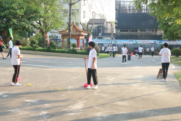 橫欄中學在9月30日下午,利用大課間的時間全校集中運動場進行了國慶的節(jié)前安全教育,會議后全校進行了創(chuàng)文清潔活動。