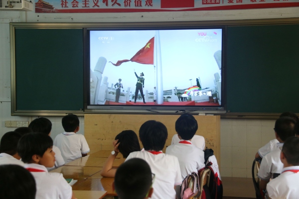 在開學的第一周,學校還組織全體師生觀看由央視播放的“開學第一課”專題電視節(jié)目,節(jié)目亦以“五星紅旗,我為你自豪”為主題講述了許多催人淚下或振奮人心的建國故事。隨后,各班還利用課間時間開展了形式多樣的“我為國旗獻禮”的教育活動,學生們的擦淚舉動,印證了愛國主義教育已如春風一般,吹進了他們的內心,后又化為種子,悄悄地扎根生長。