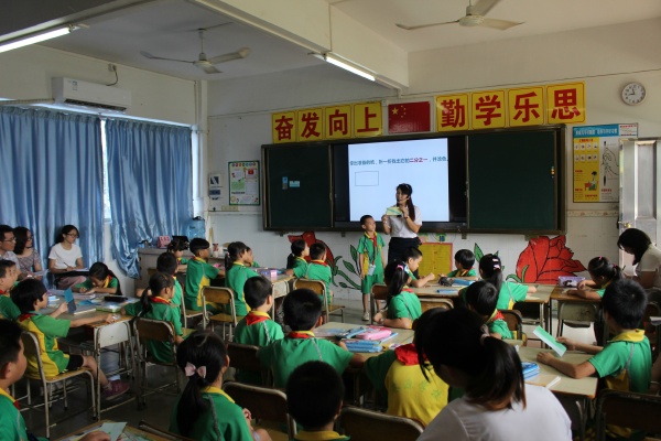 活動中,港源學(xué)校的周榮娟老師和四沙小學(xué)的陳金旋老師根據(jù)自己對教材的理解精彩地展示了《認(rèn)識幾分之一》的“同課異構(gòu)”教學(xué)課例。兩節(jié)課都本著“以學(xué)生為本”的理念,創(chuàng)設(shè)具體情境,激發(fā)學(xué)生的求知欲望,促進(jìn)學(xué)生在活動中主動建構(gòu)、探索知識。雖然課的內(nèi)容相同,但兩位老師的教學(xué)風(fēng)格各異。周榮娟老師的課沉穩(wěn)扎實,對知識點的點播準(zhǔn)確到位;陳金旋老師的課活潑、新穎,采用情趣課堂的模式,讓學(xué)生在輕松的氛圍中學(xué)習(xí),在交流、游戲中完成學(xué)習(xí)任務(wù)。