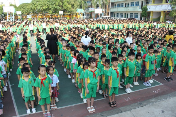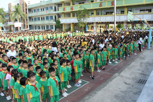 接著,學校校長尹少軍發(fā)表熱情洋溢的講話,他首先代表學校對新加入的老師和一年級600名新生表示熱烈的歡迎,歡迎他們加入港源這個大家庭。接著他回顧了上學期在全體老師的辛勤努力下,學校在市鎮(zhèn)抽考和調考中所取得了非常優(yōu)異成績,贏得了上級部門領導、家長及社會各界人士的一致好評,感謝全體老師為學校所做的貢獻。勉勵所有同學,要繼續(xù)努力,爭取在新學年取得更優(yōu)異的成績。最后,對六年級的同學提出殷切的希望,希望他們在小學的最后一年的學習生涯中,努力學習,奮勇拼搏,做最好的自己。負責安全的德育副校長鄧韶洲提到,新學期要繃緊安全這根弦,牢記安全這件事,才能開心學習,健康成長。