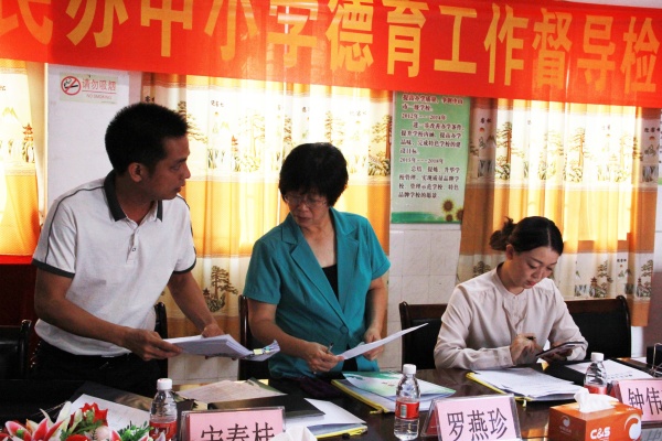 檢查組首先現(xiàn)場查看了校園環(huán)境及功能場室,觀看了學?;犹K社團的表演。檢查組對學校環(huán)境及學生的精神面貌給予了高度贊賞。隨后,大家齊聚學校會議室,聽取了橫欄鎮(zhèn)華文學校葉冬生主任的德育工作匯報。接著,檢查組一行認真查閱了學校德育工作管理等相關資料。檢查小組在仔細查看了學校的各項檔案資料后,充分肯定了學校的各項德育工作開展扎實,檔案資料具體完善。接著,檢查組一行對學校師生進行了訪談,了解學校的德育常規(guī)工作。最后,檢查組經(jīng)過認真的討論分析后,對學校作出了客觀的評價,并就相關檢查情況與學校領導進行了反饋。