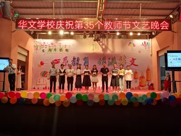 通過近兩個(gè)小時(shí)的晚會(huì),不僅全面展示了華文學(xué)校教育教學(xué)方面的成果,熱情謳歌了華文人教書育人、愛崗敬業(yè)、無私奉獻(xiàn)的高尚品德,還生動(dòng)詮釋了華文教師立足崗位、默默耕耘的精神風(fēng)貌和崇高精神。是一場(chǎng)十分成功的晚會(huì)。