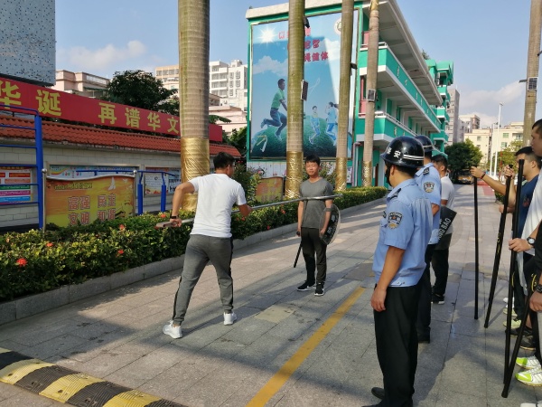 在訓(xùn)練過(guò)程中,校園護(hù)衛(wèi)隊(duì)成員們精神飽滿,斗志昂揚(yáng),在楊家永副主任的指導(dǎo)下認(rèn)真訓(xùn)練,仔細(xì)領(lǐng)會(huì)動(dòng)作要領(lǐng)。楊家永親身示范各類防暴器械的使用要領(lǐng),并對(duì)加強(qiáng)校園防暴應(yīng)急處置方法等方面提出了許多有針對(duì)性的建議。隨后,校園護(hù)衛(wèi)隊(duì)員們進(jìn)行了角色模擬和實(shí)際演練,楊家永副主任也適時(shí)指出演練過(guò)程中的不足并進(jìn)行糾正。