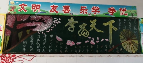 自通知下發(fā)之日起,各班班主任都積極響應(yīng),克服工作忙、時間緊等困難,帶領(lǐng)學(xué)生精心設(shè)計。各班學(xué)生在老師的帶領(lǐng)下紛紛自主查找資料,積極參與,設(shè)計版面,畫圖寫字,僅用了三、四天時間,一期主題鮮明、圖文并茂、布局美觀的黑板就報展現(xiàn)在廣大師生面前。