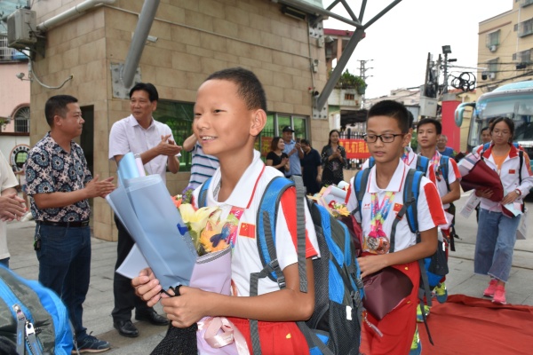 7月29日,華文學(xué)校跳繩隊教練和運(yùn)動員們載譽(yù)而歸,橫欄鎮(zhèn)教育事務(wù)指導(dǎo)中心霍嘉俊主任、華文學(xué)校董事梁耀新、祝和群先生、華文學(xué)校謝春生校長以及運(yùn)動員家長等人到學(xué)校門口迎接他們的歸來,并在學(xué)校會議室舉行了座談會。