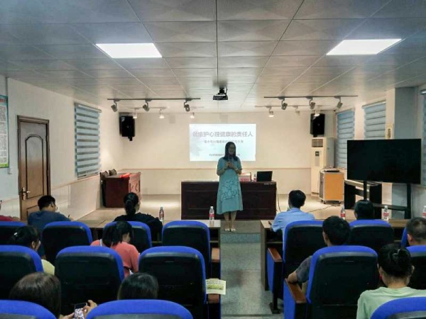 會(huì)議伊始,葉冬生主任為大家明確了此次講座的目的和必要性,他指出此次講座的內(nèi)容貼近教育一線,相信一定能夠使教師們受益匪淺。講座中,梁劍玲老師首先從互動(dòng)小游戲入手,迅速的吸引了大家的注意力,簡(jiǎn)單輕松的動(dòng)作,讓教師們明白,“當(dāng)我們對(duì)一件事做到心中有數(shù)、心中有法的時(shí)候,我們才能臨危不懼、臨危不亂、處置有方”。梁老師結(jié)合自身多年的心理工作經(jīng)驗(yàn),從教師自我關(guān)懷、了解青少年、清楚青少年的困境、幫助青少年四個(gè)方面來(lái)進(jìn)行講解;梁老師通過心理健康三級(jí)圖,辨析各級(jí)別人群的行為表現(xiàn),分別應(yīng)該怎么做;“不論您是誰(shuí),在哪里,當(dāng)孩子主動(dòng)向你傾述和表達(dá)時(shí),請(qǐng)陪伴他、關(guān)懷他”,強(qiáng)調(diào)身邊人的陪伴與關(guān)懷對(duì)孩子健康成長(zhǎng)的重要性;針對(duì)學(xué)生出現(xiàn)的心理問題時(shí),梁老師強(qiáng)調(diào)要做好學(xué)生的普訪,及時(shí)掌握學(xué)生動(dòng)態(tài)、與學(xué)生談話技巧、重點(diǎn)關(guān)注人群分類和應(yīng)對(duì)措施等,提出了很多行之有效的心理問題事件的干預(yù)和應(yīng)對(duì)策略。梁老師摒棄空洞的理論說教,營(yíng)造一個(gè)耳目一新、輕松愉快、全員參與的氛圍,讓在座的每位教師置身其間,在豐富多彩的游戲和體驗(yàn)活動(dòng)中感受和思考。