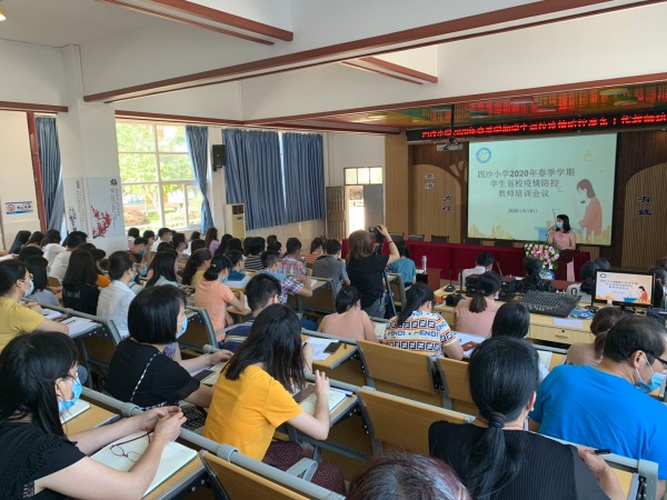 打印 |為進(jìn)一步落實(shí)好疫情時(shí)期學(xué)生返校工作,保障師生安全返校,給予全體師生積極、正面的心理指引,2020年5月6日下午,四沙小學(xué)在階梯室舉行了2020年春季學(xué)期學(xué)生返校疫情防控準(zhǔn)備工作暨返校心理建設(shè)指引教師培訓(xùn)會(huì)。培訓(xùn)由德育處副主任黃麗君主持,全體教師參與。