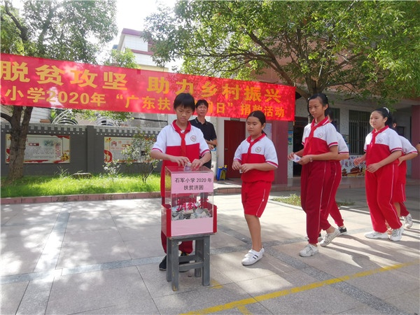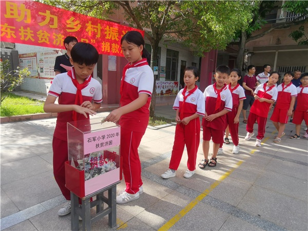 旭日東升,夏風(fēng)習(xí)習(xí),又是一個(gè)艷陽(yáng)高照的周一早上,也是一個(gè)令人難忘的日子。2020年6月29日上午,為積極響應(yīng)廣東省政府號(hào)召,關(guān)愛(ài)貧困人口,黃圃鎮(zhèn)石軍小學(xué)組織全校師生開(kāi)展了“決勝脫貧攻堅(jiān),助力鄉(xiāng)村振興”的扶貧濟(jì)困捐款活動(dòng)。