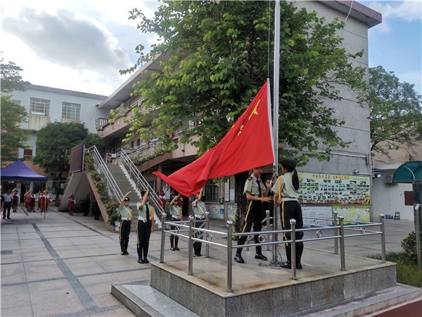 洪亮的國(guó)歌聲響起,縈繞整個(gè)校園,全體師生莊嚴(yán)肅穆,面向國(guó)旗,精神飽滿地瞻仰國(guó)旗,迎接新的周一。