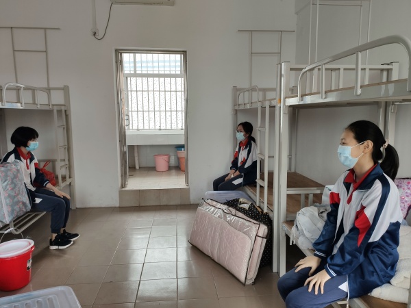 第一批次完成后,馬上組織第二批次的住宿生測(cè)量體溫,進(jìn)入校門,直達(dá)宿舍放行李后,在自己的床鋪上等候廣播通知,錯(cuò)峰下樓,保持間隔一米以上,由老師帶隊(duì)到檢測(cè)點(diǎn)檢測(cè)。檢測(cè)完成后,要求學(xué)生聯(lián)系在校門外等候的家長,立即離開學(xué)校。