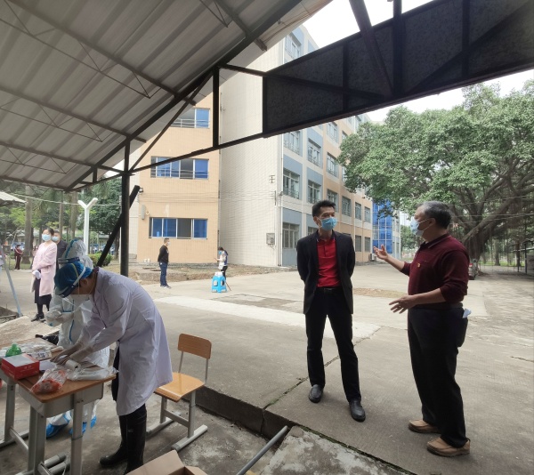 為認(rèn)真貫徹落實(shí)省教育廳關(guān)于初中高中畢業(yè)年級(jí)返校復(fù)課的決策部署,迎接即將到來的開學(xué)復(fù)課,做好校園防疫工作,4月25日,南頭鎮(zhèn)初級(jí)中學(xué)在盧新泉校長的帶領(lǐng)下,開展南頭鎮(zhèn)初級(jí)中學(xué)初三級(jí)學(xué)生及外鎮(zhèn)就讀畢業(yè)生的核酸檢測(cè)工作,鎮(zhèn)黨委薛焯明、鎮(zhèn)文體教育局吳永高局長一行蒞臨學(xué)校指導(dǎo)工作。