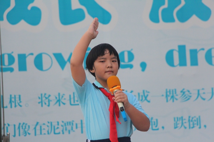 國旗下,來自502中隊的尚可馨學長進行了以《感恩老師,慶祝教師節(jié)》為題的精彩演講??绍皩W長說:“老師就像蠟燭一樣,燃燒了自己,照亮了別人,默默地在自己的崗位上無私的奉獻著。在人生的旅途上,是老師為我們點燃希望的光芒,給我們插上理想的翅膀,翱翔在知識的海洋上……”,她并代表全體隊員提前祝老師們教師節(jié)快樂!