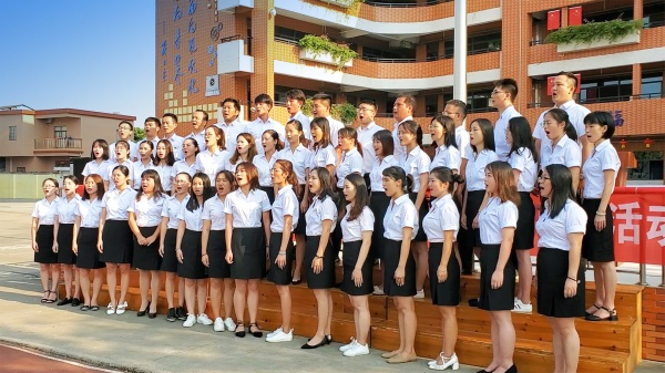 在鄭書記的講話后,學校教師合唱隊激情演唱《紅星歌》,表達對偉大的黨和祖國真摯的愛和祝福。何穎詩老師帶領全體師生齊唱《歌唱祖國》和《我和我的祖國》。在少先隊大隊輔導員劉影芳老師的帶領下,高呼“祖國萬歲!”全體師生揮舞國旗,深情演唱,以昂揚的精神面貌、嘹亮的歌聲、振奮人心的口號表達了對祖國的美好祝福,表達了對祖國、對人民、對學校的熱愛。