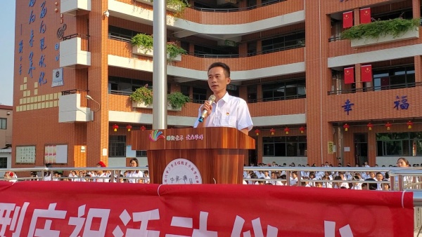 升旗結束后,學校黨支部書記、常務副校長鄭堪文發(fā)表國旗下講話。鄭書記以飽滿的激情帶領全體師生回首了新中國70年的艱辛探索、重溫70年的光輝歲月、歷數(shù)70年的輝煌成就。使命呼喚擔當,奮斗鑄就輝煌,鄭書記號召全體師生不忘初心,牢記使命,堅定信仰信念,厚植愛國情懷,錘煉強國本領,立足崗位實踐,力踐報國之行,做新時代“四有”好老師,做社會主義合格接班人。以滿懷的熱情踏上新征程,用奮斗實現(xiàn)時代擔當,用奮斗描繪南頭華暉學校最美姿態(tài)!