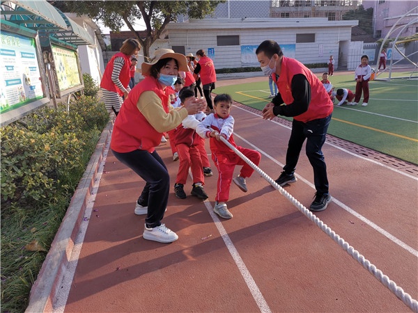 首先進行跑操比賽。各個班級以飽滿的精神面貌,整齊有力的步伐,昂揚向上的姿態(tài),各具獨特的風(fēng)格,一一入場進行了比賽,都賽出了水平,賽出了風(fēng)采。緊接著,進行趣味運動會的項目比賽。項目比賽有拍球、投籃、足球射門、趣味賽龍以及拔河比賽,分為低、中、高年級組,年級組之間各班互相進行比賽。