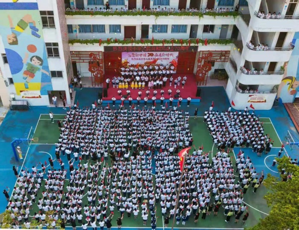 金秋送爽,丹桂飄香。值此慶祝新中國(guó)成立70周年之際,為了響應(yīng)中山市教育工委、市教育和體育局的號(hào)召,豐富少先隊(duì)員們的學(xué)習(xí)生活,激發(fā)熱愛祖國(guó)、熱愛學(xué)校、熱愛藝術(shù)的情感,傳達(dá)師生們對(duì)偉大祖國(guó)的摯愛深情,同時(shí)展示少年兒童朝氣蓬勃、健康向上的精神風(fēng)貌,促進(jìn)校園精神文明建設(shè),楊仙逸小學(xué)于9月30日上午,舉行了主題為“禮贊新中國(guó) 奮進(jìn)新時(shí)代”慶祝活動(dòng)。參加這次活動(dòng)的領(lǐng)導(dǎo)有:黨工委委員何健冰、石岐區(qū)文體教育局德育專干潘志堅(jiān)、迎陽(yáng)社區(qū)居委會(huì)書記區(qū)敏妍以及楊仙逸小學(xué)全體師生。