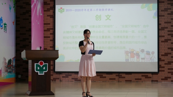典禮的第四個環(huán)節(jié)是由陳惠良主任對暑假作業(yè)進行倡議。針對今年是我市創(chuàng)建文明城市的決戰(zhàn)決勝之年,陳惠良主任圍繞《文明小腳丫,共創(chuàng)溫馨家》主題,詳細(xì)地跟同學(xué)們做了暑假活動引導(dǎo),從宣傳教育活動、養(yǎng)成教育活動、志愿服務(wù)活動、書香家庭活動、親子研學(xué)活動和文明攝影活動六方面勉勵同學(xué)們?yōu)橹猩絼?chuàng)新全國文明城市出一份力。