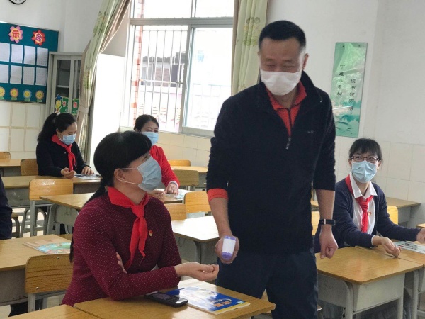 在學校課室舉行,要求課室內(nèi)打開所有的門窗,學生相隔就坐。宣布晨檢開始,班主任再次用測溫儀檢查學生的體溫,并簡要進行對話,了解學生身體狀況。檢查完畢,向學校主管衛(wèi)生的行政匯報情況,無異常后開始上課。