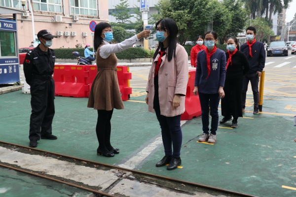 要求學生排隊入校園,互相間隔1米,進入校門兩位老師在校門口內(nèi)負責測量體溫,兩位老師隨機詢問學生。(若發(fā)現(xiàn)有體溫高于37.3°C,立刻由值班老師帶至隔離觀察區(qū),經(jīng)專門通道至師生發(fā)熱臨時隔離觀察室,第一時間聯(lián)系家長,同時詢問是否有疫區(qū)旅居史,如果有第一時間和疾控中心部門聯(lián)系,同時上報教體局。)體溫正常,無感冒、咳嗽癥狀學生按既定路線依次進入校園。
