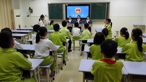 憲法宣傳周期間,學校舉行了憲法宣傳教育啟動儀式,召開全體教師動員大會,要求全體教師從思想上高度重視憲法知識的普及和宣傳,做好學生學法、知法、守法、護法的帶頭人。學校利用集會、黑板報和LED電子屏等途徑積極宣傳憲法知識,營造了濃郁的法治宣傳氛圍,打造法治校園環(huán)境。學校還依托《道德與法治》等相關(guān)課程,著力加強體驗式實踐式教學,切實提升憲法教育的針對性和實效性;學校在高年級開展了模擬法庭活動,進一步推動了憲法教育,著力培育了學習憲法、尊崇憲法的校園法治文化;同學們回家和爸爸媽媽一起進行“學憲法講憲法”網(wǎng)上學習活動,讓憲法走進千家萬戶,提高全民的法制意識。