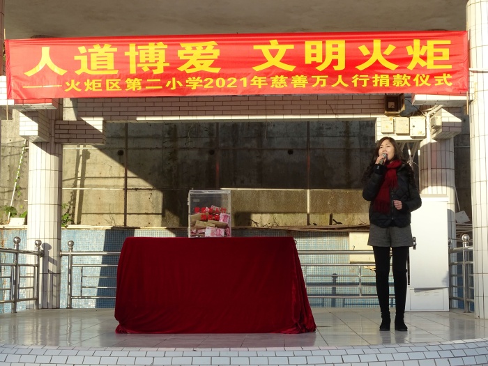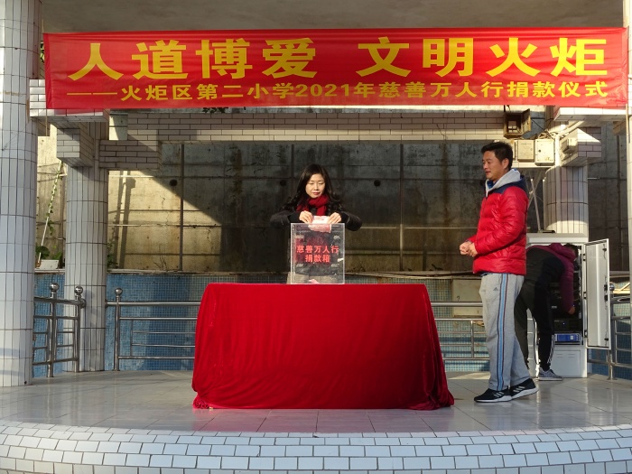 為積極響應(yīng)2021年市、區(qū)慈善萬人行活動(dòng)倡議,弘揚(yáng)人道博愛精神,倡導(dǎo)中華美德,唱響新時(shí)代主旋律,營(yíng)造互幫互助互愛的社會(huì)氛圍,為建設(shè)文明火炬區(qū)加快高質(zhì)量崛起貢獻(xiàn)力量,2020年12月31日上午,開發(fā)區(qū)第二小學(xué)舉行主題為“人道博愛,文明火炬”2021年慈善萬人行義捐活動(dòng)。