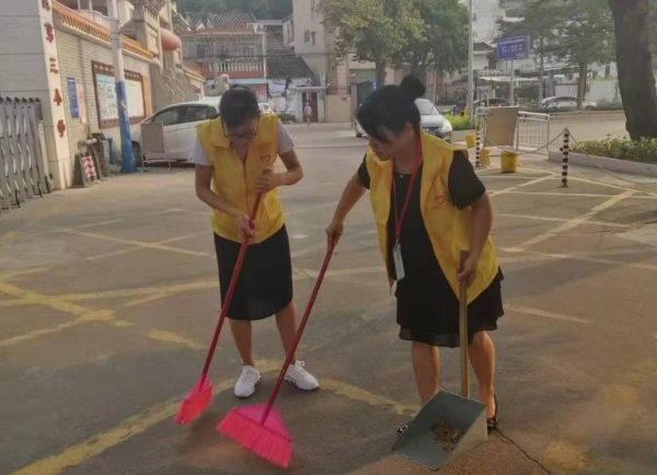 活動中,三小黨支部書記、校長唐秉晶帶頭清掃。大廣場處處是熱火朝天的大掃除場面:黨員同志情緒熱情高漲,充分發(fā)揮不怕臟、不怕累的精神,各自在負責清潔的區(qū)域認真打掃,掃不起來的垃圾就用手撿,徹底清理廣場以及旁邊村民房前屋后的草堆、垃圾堆,拾撿村道路旁飄散的廢舊地膜、塑料包裝袋、飲料盒、食品盒等環(huán)境污染物,清除公告欄的“牛皮癬”,經(jīng)過半個小時的共同努力,廣場的環(huán)境衛(wèi)生狀況大為改善,感覺煥然一新。