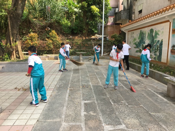到達(dá)沙邊村良德公園后后,負(fù)責(zé)本次活動(dòng)的羅老師安排好勞動(dòng)范圍。對隊(duì)員和家長進(jìn)行分組,定好負(fù)責(zé)組長,并強(qiáng)調(diào)注意事項(xiàng)。接著隊(duì)員們?nèi)齻€(gè)一群,五個(gè)一伙,就開始熱火朝天的干起來。隊(duì)員們不怕臟、不怕累,撿起石凳下的白色垃圾和丟在綠化叢中的所料袋;還有的地方有口香糖印,他們采用噴水、用鏟子鏟的方式,讓公園的地面變得干凈起來。在有些地方有些不易發(fā)現(xiàn)的煙頭和枯樹葉,他們也一點(diǎn)一點(diǎn)掃進(jìn)垃圾鏟。在隊(duì)員們的共同努力下,公園地面的紙片、草叢中的垃圾袋都不見了,隊(duì)員們看著自己勞動(dòng)成果,都感到非常欣慰開心。