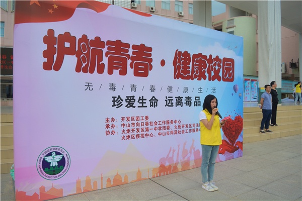 中山市向日葵社工服務(wù)中心社工帶領(lǐng)火炬區(qū)一中學(xué)生志愿者表演完禁毒拍手操后,火炬區(qū)一中團(tuán)委書記張鐵穩(wěn)致辭。他希望同學(xué)們通過下午的游園活動(dòng),進(jìn)一步了解毒品的危害,從而珍惜生命、遠(yuǎn)離毒品、擁抱美好人生。他希望大家要認(rèn)真學(xué)習(xí)禁毒知識(shí)。增強(qiáng)自覺遠(yuǎn)離毒品意識(shí)和抵制毒品的能力;遠(yuǎn)離毒品,遠(yuǎn)離游戲廳、網(wǎng)吧等場所,不接觸毒品,用健康的行為抵御毒品的侵害,做“珍愛生命,拒絕毒品”的好少年;從我做起,抵制毒品,做到不抽煙,不吸食毒品;不從事毒品違法犯罪活動(dòng);主動(dòng)同毒品違法犯罪行為作斗爭。