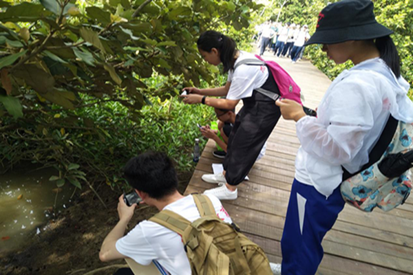 回顧整個(gè)地理研學(xué)活動(dòng),第一天:參賽隊(duì)伍學(xué)生報(bào)到,落實(shí)各項(xiàng)活動(dòng)要求,強(qiáng)調(diào)學(xué)生組織紀(jì)律觀念,領(lǐng)取資料與服裝。因?yàn)楸菊n題組參賽的四支隊(duì)伍均為首次參加此類地理研學(xué)活動(dòng),整個(gè)過(guò)程,參賽學(xué)生和指導(dǎo)老師既興奮又緊張。第二天分兩個(gè)時(shí)間段:8:00—16:00為實(shí)地考察,16:00—21:00完成答卷和PPT制作。上午8點(diǎn)評(píng)委老師向各參賽隊(duì)發(fā)放考察試題,本次地理研學(xué)考察地點(diǎn)有四個(gè):淇澳紅樹(shù)林保護(hù)區(qū)、淇澳島白石街、唐家灣歷史建筑共樂(lè)園和唐家三廟,每一個(gè)考察點(diǎn)都有相應(yīng)的考察任務(wù)。課題組的各參賽隊(duì)拿到考察試題后馬上進(jìn)行試題分析,把握考察重點(diǎn)、研究考察方法,學(xué)生根據(jù)自身優(yōu)勢(shì)進(jìn)行分工,一到察地點(diǎn)就立即行動(dòng)。有的同學(xué)細(xì)心觀察紅樹(shù)林的生長(zhǎng)環(huán)境,并拍照取證;有的則認(rèn)真聆聽(tīng)隨行專家的講解,并做好相關(guān)的紀(jì)錄。為了獲得更為準(zhǔn)確的信息,同學(xué)們還走訪了當(dāng)?shù)卮迕?,最終在當(dāng)天下午4點(diǎn)按照組委會(huì)要求完成所有的考察任務(wù)?;氐今v地,隊(duì)員們馬上投入到完成答卷和制作研學(xué)匯報(bào)PPT中。這是展示隊(duì)伍地理綜合素質(zhì)的時(shí)候,課題組各參賽隊(duì)的同學(xué)們繼續(xù)采用分工合作、查閱資料、討論研究等形式,忙碌到晚上9:15準(zhǔn)時(shí)上交答卷和PPT。上交之后,同學(xué)們也沒(méi)有放松,而是一次次熟悉PPT的內(nèi)容,設(shè)想評(píng)委老師有可能提出的問(wèn)題。第三天:參賽隊(duì)展示研學(xué)旅行成果,接受評(píng)委提問(wèn)與答辯。本課題組各參賽隊(duì)的學(xué)生憑借扎實(shí)的地理功底、精美的手工繪圖、精彩的展示答辯,贏得了評(píng)委老師和在場(chǎng)老師同學(xué)的一致好評(píng),圓滿地完成了考察內(nèi)容。
