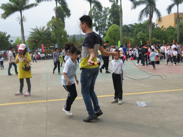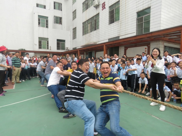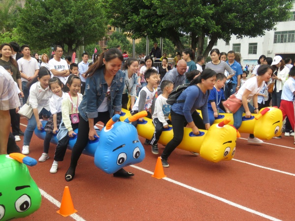 本屆運(yùn)動會分兩場進(jìn)行,上午低年級親子運(yùn)動會,下午中高年級田徑運(yùn)動會。親子運(yùn)動會上,運(yùn)動會籌備組本著讓更多學(xué)生與家長都參與其中的原則,特設(shè)置了拔河、親子跳繩、接沙包、“摸石頭過河”、“毛毛蟲接力”等趣味十足的團(tuán)體項目,充分體現(xiàn)了人人都是運(yùn)動員以及團(tuán)結(jié)向上、奮勇拼搏的體育精神。拔河比賽開始啦!家長之間密切配合,運(yùn)動賽場上洋溢著家長和孩子們的歡聲笑語。大家都熱情地參與其中,充分拉近了家長和孩子之間的距離,讓家長體驗到運(yùn)動中的快樂、童真。家長們的積極參與、孩子們歡呼助威,為活動添了更精彩的一筆,把此次運(yùn)動會推向了高潮。每一個團(tuán)體項目都競爭激烈,熱鬧非凡。每一個場景都展現(xiàn)著親情的其樂融融、和諧與快樂!同時昭示著運(yùn)動帶給大家的活力與歡樂。
