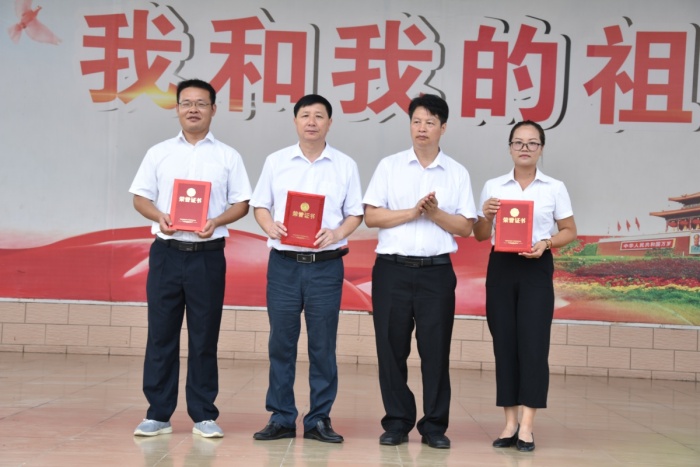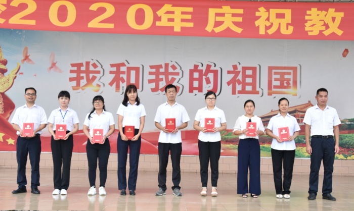“起來!不愿做奴隸的人們——”全校近3000名師生齊唱國歌,五星紅旗冉冉升起,慶祝教師節(jié)暨表彰大會在莊嚴(yán)的升旗儀式中拉開了序幕。學(xué)生代表雷薈美同學(xué)激情演講,表示在新的學(xué)年將會勤奮刻苦,努力拼搏,不辜負(fù)家長、老師們的殷切期望,并深情表達(dá)了對老師的感恩,對同學(xué)的激勵以及對全體老師的節(jié)日祝福。辦公室吳良成主任宣讀表彰決定,對在2019學(xué)年度教育教學(xué)中成績優(yōu)異的優(yōu)秀少先隊輔導(dǎo)員、優(yōu)秀班主任、優(yōu)秀教師、優(yōu)秀教育工作者共35位老師進(jìn)行了表彰,學(xué)校黃元感校長及主要行政領(lǐng)導(dǎo)為獲獎教師進(jìn)行了頒獎,感謝他們在過去一個學(xué)年的傾情付出,成就學(xué)校榮光。