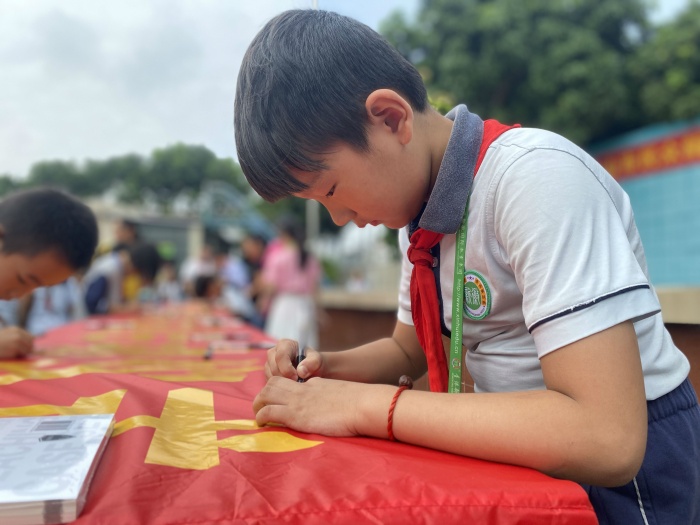 啟動儀式的高潮在朗誦國學(xué)經(jīng)典。政教處陳七靈干事帶領(lǐng)同學(xué)們朗誦國學(xué)經(jīng)典,各個年級的同學(xué)熱情高漲,聲音嘹亮。朗誦結(jié)束后,各班主任老師帶領(lǐng)5位同學(xué)進行簽名留念。