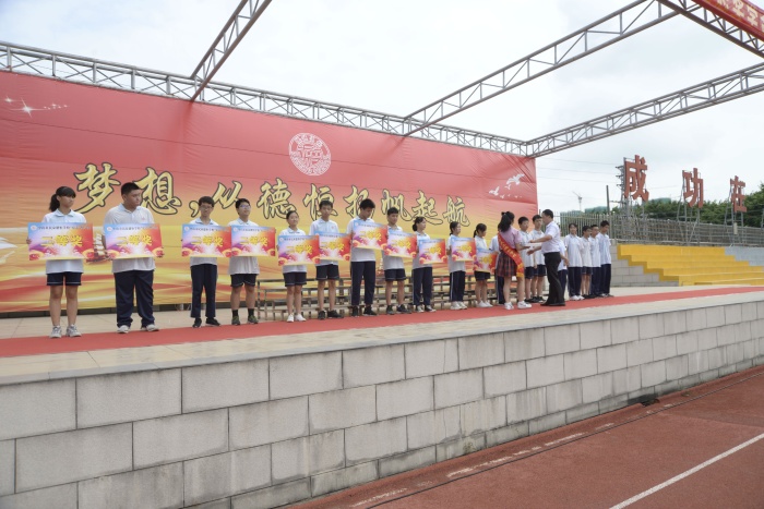 在全場氣氛被推向高潮之時(shí),統(tǒng)籌管理教務(wù)工作的教導(dǎo)處鄧新軍主任為典禮致辭。鄧主任提出,近年來,中山市民眾德恒學(xué)校能夠取得輝煌的發(fā)展,離不開集團(tuán)的大力支持,也離不開老師們和同學(xué)們的勠力同心,更離不開家長們的協(xié)作配合。在2020年上半年,德恒學(xué)校在中考成績又實(shí)現(xiàn)了新的歷史性的突破,為德恒的史冊上又增添了濃墨重彩的一筆。鄧主任希望借此激勵(lì)孩子們:“宏志獎(jiǎng)”秉承著“追求卓越,超越自我”的校園精神,鼓勵(lì)孩子奮發(fā)讀書的初衷,希望孩子們能夠樹立遠(yuǎn)大的志向,培養(yǎng)勤奮刻苦的精神,更要學(xué)會創(chuàng)新學(xué)習(xí),用汗水、智慧和青春年華,讓夢想從德恒揚(yáng)帆起航!