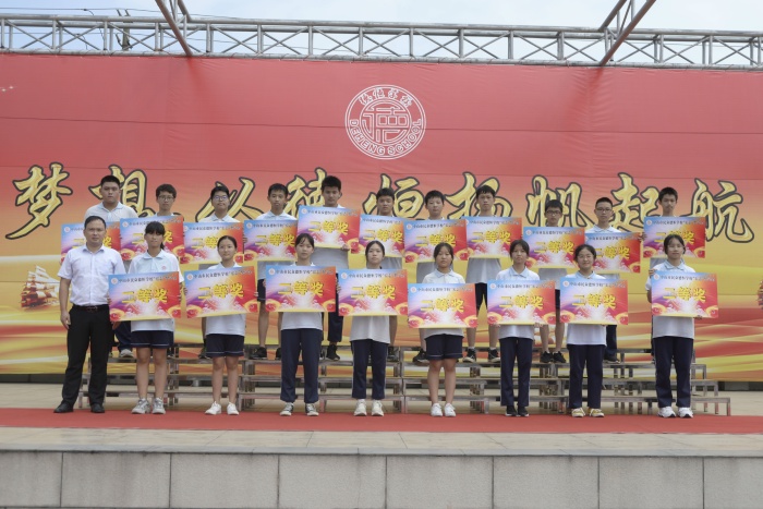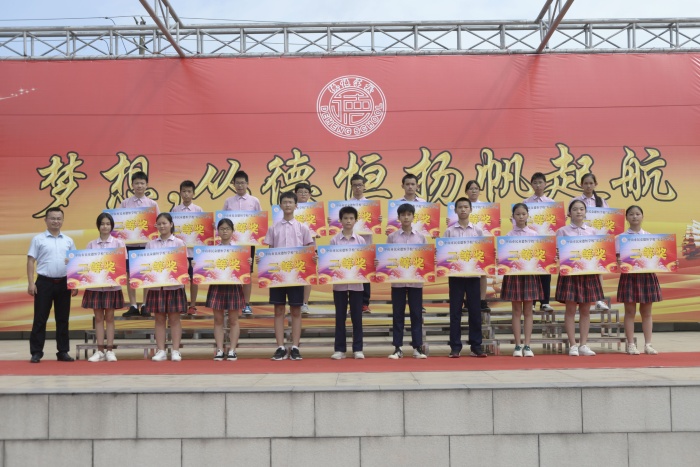 接著,頒獎(jiǎng)環(huán)節(jié),掌聲雷動(dòng),執(zhí)行董事曾海光、王盛剛校長、校辦華主任、德育處楊主任、教務(wù)處鄧主任和生活部高主任等領(lǐng)導(dǎo)分別上臺為他們頒發(fā)獎(jiǎng)金牌,并希望他們戒驕戒躁,再接再厲,繼續(xù)取得好成績。一幅幅肯定、鼓勵(lì)的畫面定格在舞臺之上,獲獎(jiǎng)學(xué)子手持獎(jiǎng)金牌,臉上洋溢著自信大方的笑容,展演著他們無悔的張揚(yáng)的青春。