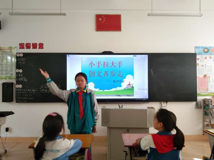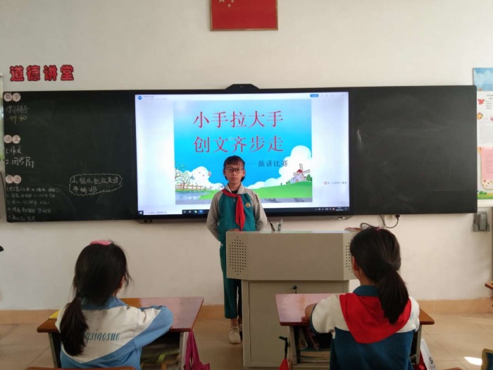 同時,學校多舉措開展了創(chuàng)文主題實踐活動。一是美化校園環(huán)境營造濃厚的創(chuàng)文氛圍。刷新了校園內社會主義核心價值觀、文明用語,同學們爭相誦讀,牢記于心,營造了濃濃的“創(chuàng)文”氛圍。二是宣傳文明知識。學校利用微信公眾號、班級群等宣傳陣地,推送文明城市創(chuàng)建知識,倡導家長與學生積極參與各類創(chuàng)建知識調查及文明知識的學習。三是召開文明禮儀教育主題隊會。各班利用假前班隊會,進行了儀表之禮、餐飲之禮、言談之禮、待人之禮、行走之禮、觀賞之禮、瀏覽之禮、儀式之禮等八禮教育。高年級全體學生在班主任老師的指導下積極參與“小手拉大手,創(chuàng)文齊步走”助力農村人居環(huán)境整治征文比賽、繪畫比賽、演講比賽等活動,堅持“小手拉大手”家校共育,做到創(chuàng)文創(chuàng)衛(wèi)人人知曉、人人參與。