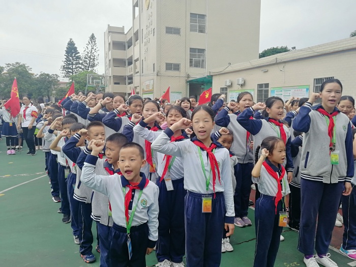 最后,在大隊輔導(dǎo)員吳絲敏老師的帶領(lǐng)下,少先隊員們大聲呼號:“時刻準(zhǔn)備著!”,響亮的呼號聲為本次入隊儀式畫上了圓滿的句號。