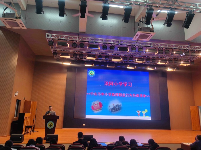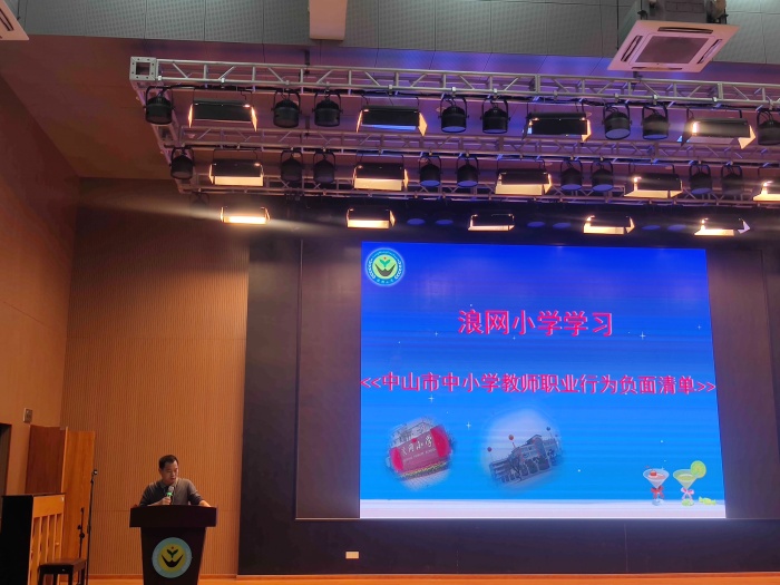為了進一步加強師德師風建設,提高教職工的職業(yè)道德素養(yǎng),強化教師文明從教、規(guī)范從教的職業(yè)意識,12月1日下午,浪網(wǎng)小學組織全體教師在階梯室開展師德師風建設專題學習會。此次學習會由該校劉偉勝校長主講,全體教師一同學習了新時代中小學教師職業(yè)行為十項準則和中山市中小學教師職業(yè)行為負面清單。