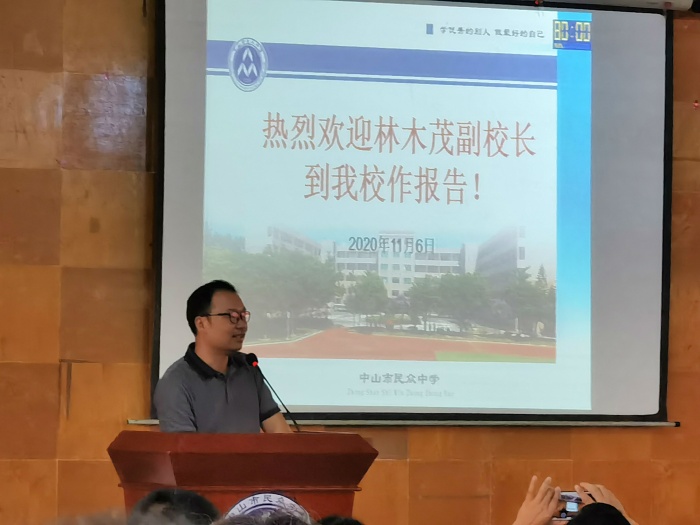 熱烈歡迎林木茂副校長到民眾中學(xué)作師德講座發(fā)布時間:2020-11-09 11:19 信息來源:本網(wǎng)站 瀏覽次數(shù):0
