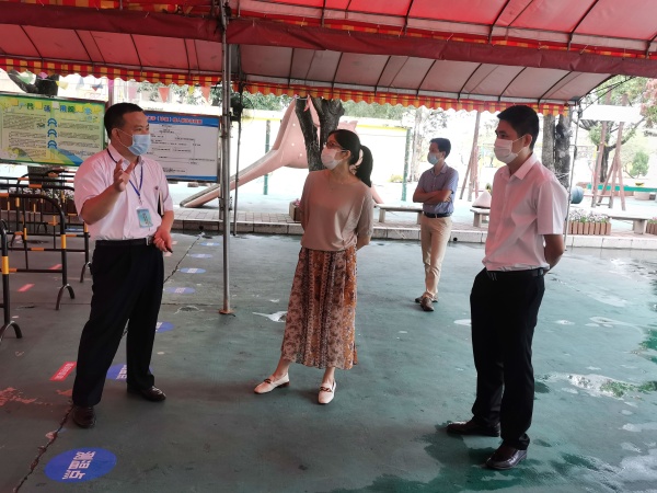 上午,民眾鎮(zhèn)衛(wèi)健局、社區(qū)衛(wèi)生服務(wù)中心、疾控中心及教育事務(wù)指導(dǎo)中心田萊莉副主任、李軍榮干事等組成學(xué)生返校疫情防控專班來到民眾中心小學(xué),對(duì)第四批學(xué)生返校疫情防控準(zhǔn)備工作進(jìn)行復(fù)檢。在民眾中心小學(xué)全體行政陪同下,對(duì)第三批學(xué)生返校學(xué)校驗(yàn)收過程中發(fā)現(xiàn)的問題進(jìn)行回頭看,對(duì)整改的項(xiàng)目進(jìn)行現(xiàn)場(chǎng)核查。專班成員分別對(duì)學(xué)校健康觀察室,1-3年級(jí)教室,備用教室、留觀室、校醫(yī)室、學(xué)生廁所等室場(chǎng)進(jìn)行了詳細(xì)的實(shí)地走訪。特別對(duì)前期檢查中存在不足,需要整改的地方進(jìn)行了一一的核查。檢查中發(fā)現(xiàn),各個(gè)室場(chǎng)都已整改完善,達(dá)到相關(guān)標(biāo)準(zhǔn)。之后,專班組成員對(duì)學(xué)校的疫情防控工作給予了充分的肯定。田萊莉副主任還著重了解了復(fù)學(xué)首日,學(xué)校高年級(jí)學(xué)生的返校情況和校門口的交通情況,并對(duì)學(xué)校在后續(xù)低年級(jí)復(fù)學(xué)工作中提出了建議。