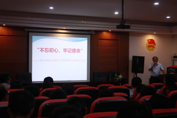 中山市民眾德恒學校開展“不忘初心,牢記使命”主題師德師風教育活動發(fā)布時間:2019-09-16 21:55 信息來源:本網(wǎng)站 瀏覽次數(shù):27