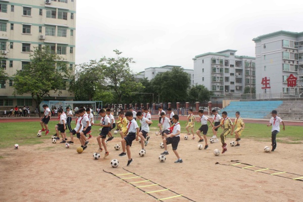 八點(diǎn)半左右,家長(zhǎng)們陸續(xù)到校,他們紛紛在網(wǎng)球場(chǎng)前面的簽名墻上簽名并拍照留念,這面簽滿(mǎn)了家長(zhǎng)和孩子名字的墻壁大大地增加了家長(zhǎng)對(duì)自己身份的認(rèn)同感,拉近了學(xué)校、學(xué)生和家長(zhǎng)三方的距離。九點(diǎn)到九點(diǎn)二十分,是孩子們大課間活動(dòng)時(shí)間,他們以班級(jí)為單位安靜有序地到達(dá)指定位置,隨著體育老師一聲令下,便立即投入到各自的活動(dòng)項(xiàng)目之中。 小學(xué)的每個(gè)班級(jí)都有自己的特色訓(xùn)練項(xiàng)目,或籃球,或足球,或跳繩,形式多樣,內(nèi)容豐富,孩子們?cè)诖笳n間活動(dòng)中不僅鍛煉了身體,也找到了學(xué)習(xí)之外的樂(lè)趣。七八年級(jí)的同學(xué)則是以班級(jí)為單位的跑步活動(dòng),他們整齊劃一的步伐、隊(duì)列和嘹亮的口號(hào)聲引得旁觀(guān)的家長(zhǎng)贊嘆不已,紛紛掏出手機(jī)記錄下這一個(gè)個(gè)精彩的瞬間。