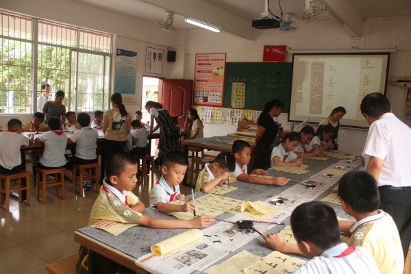 大課間活動(dòng)結(jié)束之后便分別是小學(xué)的第二課堂和初中的文化課展示。小班制教學(xué)和第二課堂的開(kāi)設(shè)是我校自辦學(xué)以來(lái)的亮點(diǎn)和特色,小班化教學(xué)可以兼顧到課堂上的每一個(gè)學(xué)生,最大程度地做到因材施教,而第二課堂的開(kāi)設(shè)則是現(xiàn)代社會(huì)素質(zhì)教育和學(xué)生德智體美全面發(fā)展的需要。在第二課堂上,孩子們一幅幅優(yōu)秀的作品、一曲曲精妙的彈奏頻頻讓家長(zhǎng)們感到驚喜,家長(zhǎng)們對(duì)孩子一個(gè)學(xué)期以來(lái)的出色表現(xiàn)和巨大進(jìn)步感到欣慰不已。初中的文化課上,十三位語(yǔ)、數(shù)、英老師創(chuàng)設(shè)趣味化、活動(dòng)化的教學(xué)情境以及生活化、情景化的教學(xué)環(huán)境,深深吸引了每一位孩子,贏得了家長(zhǎng)的一致好評(píng)。家長(zhǎng)們?cè)谟^(guān)摩學(xué)生的學(xué)科展示活動(dòng)過(guò)程中,看到了學(xué)生的進(jìn)步與成長(zhǎng),由衷感到欣喜。老師對(duì)孩子點(diǎn)點(diǎn)滴滴的關(guān)愛(ài),家長(zhǎng)們盡收眼底,感動(dòng)了在座的每一個(gè)家長(zhǎng)。