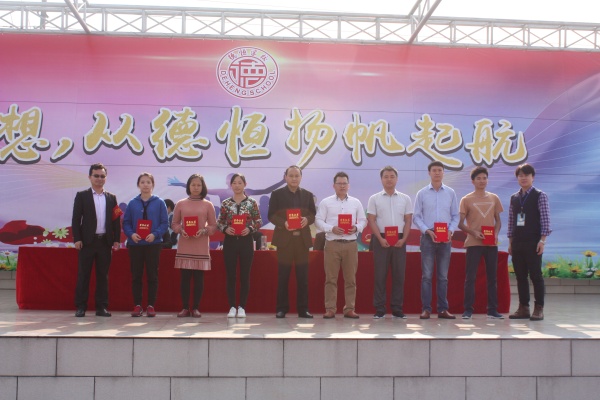 最后,開學(xué)典禮還舉行了隆重的教師表彰儀式。學(xué)校德育處楊寵主任、辦公室華紹文主任、教導(dǎo)處鄧新軍主任和安全處葉寶山主任分別為上學(xué)期榮獲“優(yōu)秀教師”稱號(hào)的老師頒獎(jiǎng)。然后王校長(zhǎng)親自為“優(yōu)秀班主任”們頒發(fā)榮譽(yù)證書,以表彰他們春風(fēng)化雨,潤(rùn)物無聲的工作精神,同時(shí)也號(hào)召全體教師向他們學(xué)習(xí)與致敬。