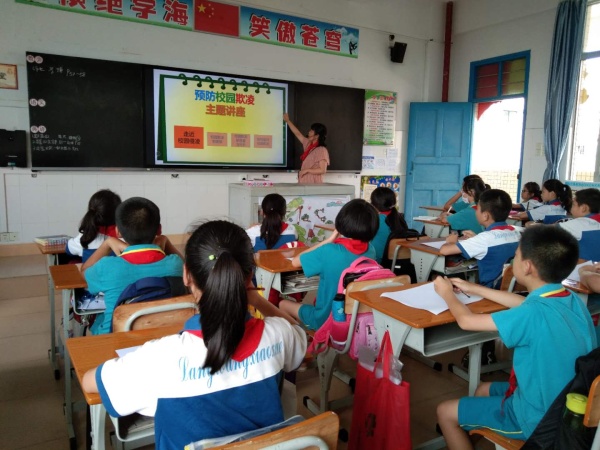 在活動中,該校組織動員部署,召開教育動員會議,成立領(lǐng)導(dǎo)小組。在班主任會議上,德育處主任謝錦霞對全體班主任校園欺凌工作培訓(xùn)。然后,該校推廣學(xué)生欺凌防治經(jīng)驗(yàn)、發(fā)放防治學(xué)生欺凌指導(dǎo)手冊、“給家長一封信”、反欺凌手抄報評比等多種方式開展宣傳活動。充分利用國旗下講話、校會、班會、宣傳語、板報、櫥窗、顯示屏等多種途徑廣泛宣傳,形成“反校園欺凌”震懾力。而各班班主任在晨會、班會時滲透反欺凌教育宣傳內(nèi)容,開展“小手拉大手”活動,提高學(xué)生抵御欺凌的自我保護(hù)能力,預(yù)防校園欺凌事件發(fā)生,促進(jìn)友善校園形成與發(fā)展。